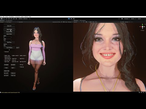 Whole girl appearance generates in realtime by C# microprograms inside Unity3d, including smiles (girl model and appearance can't be reproduced outside of Unity3d).